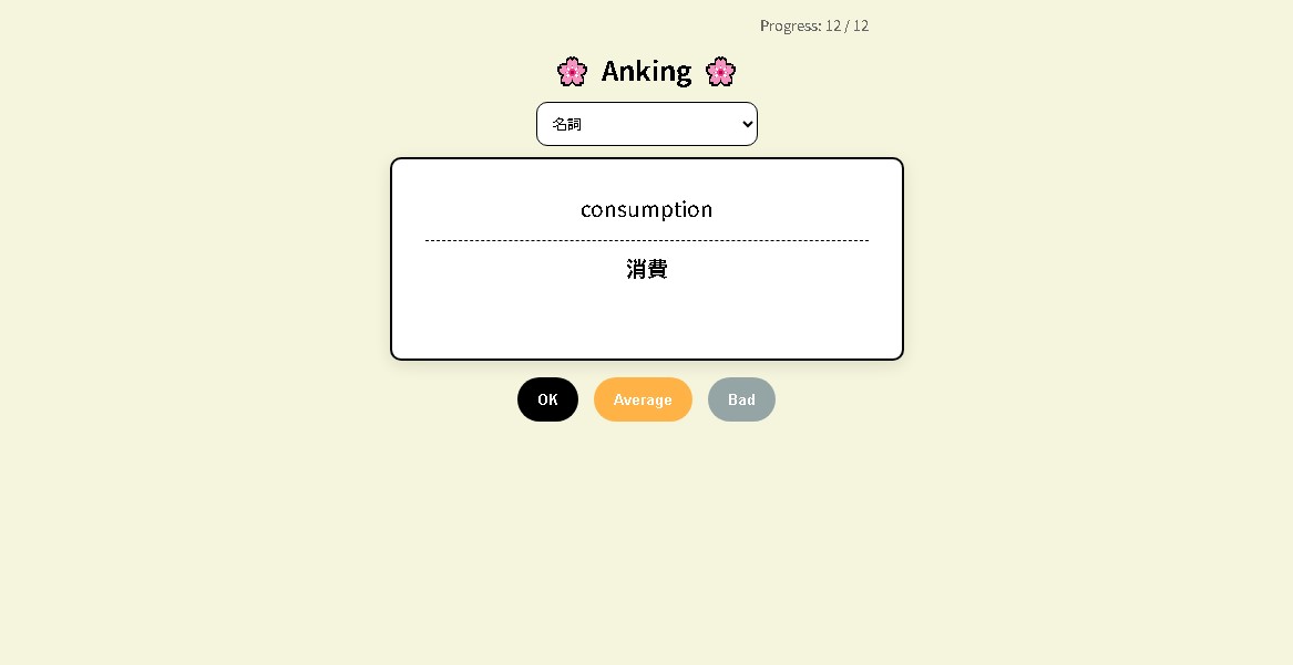 - セッション進捗管理: その時の正解率をリアルタイム表示。自分の成長を可視化します。