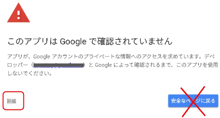 STEP2:「このアプリはGoogleで確認されていません」と表示されたら?