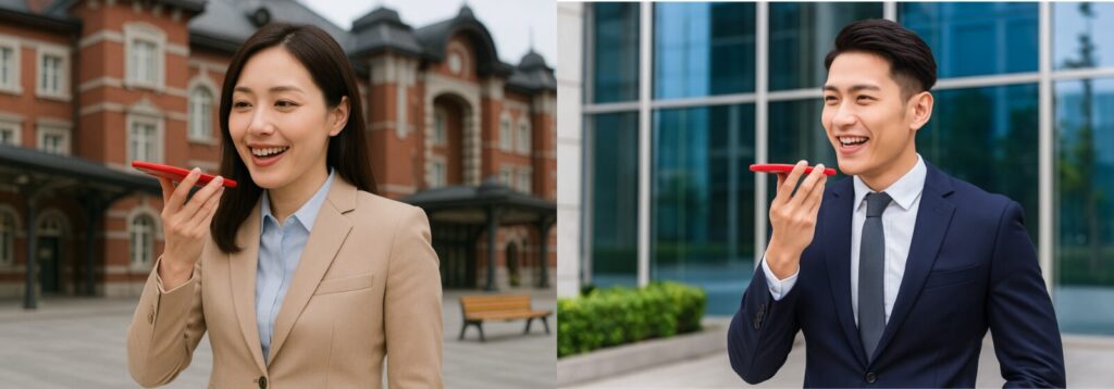 移動中に、訪問先から、カフェで一息つきながら…スマホに向かって、訪問内容を口頭で話すだけ。まるで上司に電話で報告するように伝えるだけでいいのです。