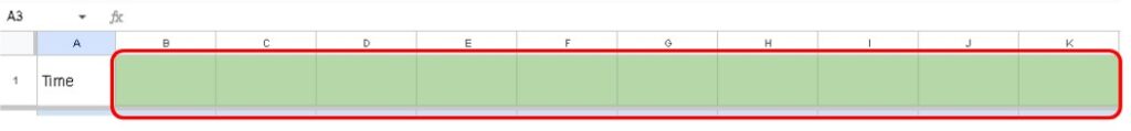 「diary」シートの1行目B-K列に、日誌に記録する項目を入力します(最大10項目)。初期設定は会議メモです。
